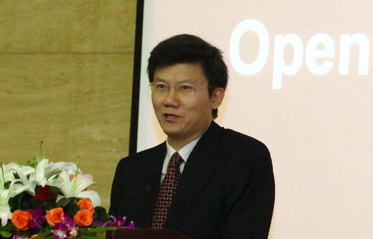 上海国家会计学院副院长李扣庆教授首先致辞。他代表夏院长和上海国家会计学院全体教职员工对于2012级100多位新学员顺利通过审查加盟SNAI-ASU合作EMBA项目大家庭表示衷心祝贺和热烈欢迎。他以中国孔老夫子的“学而知不足”作为引子,谈到了国际货币基金组织总裁近期关于金融危机以及对于未来不确定性的论断,以及最近学术界和社会科学领域关注的新话题——第三次工业革命,表示未来充满着诸多未知,有很多“不知道”。参加项目学习的各位学员也正是因为在工作和学习的过程中发现了更多未知的领域,为了求索这些未知,才共同走到两校构建的平台上,成为同学。“收获知识的过程是非常愉悦的,发现未知的领域,求索未知的领域是艰苦的,同时也是非常愉悦的。”李院长最后祝愿新学员享受同窗友谊,享受学习带来的快乐。