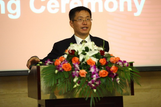 EMBA2012级新生代表、文汇新民联合报业集团副社长高韵斐先生代表新生发言,他说“这次开学典礼让他找回20多年前当学生的那种久违的感觉,刚才李院长讲了那么多的“不知道”,我相信我们的责任不仅在于获取知识,更在于去探究那么多的不知道,去影响中国商业与管理的未来”。他代表全体新学员表示将调整好心态,做好当学生的准备,遵守校规,相互友爱,相互帮助,除了收获知识和经验,还要收获友谊和爱。