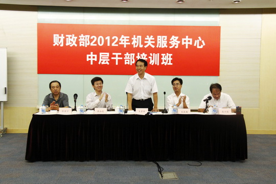 (撰稿:张海玲,摄影:胡劲波)财政部2012年机关服务中心中层干部培训班于7月中旬在我院成功举办,参加本次培训的有财政部机关服务中心、德宝实业总公司涉及25个部门40余名中层干部。财政部人事教育司张猛副司长、财政部干部教育中心王庆阁副主任、财政部干部教育中心机关处张庆朝处长、蔡明副处长、财政部机关服务中心王彦欣主任、财政部机关服务中心张国才副主任与我院李扣庆副院长出席了开班仪式,仪式由财政部机关服务中心党委副书记、德宝实业总公司总经理高兴国主持。