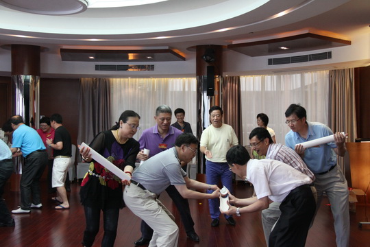 28日下午,在学院姚凡老师的指导下,大家完成了一个个妙趣横生的团队游戏。谁能想到,平日严肃威严的老总们竟有如此可爱的一面,没有职位的高低,没有年龄的大小,没心没肺地哈哈大笑,肆无忌惮地光着脚丫,仿佛重回无忧无虑的童年时代。