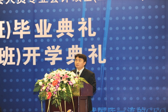 EMPAcc11期班长,苏州工业园区金鸡湖发展有限公司财务总监许如忠先生发表了热情洋溢的讲话。在讲话中,许班长申请回顾了11期班级所有同学2年来在上海国家会计学院的美好生活和回忆,他深刻的感到,两年来的学习,使大家更加思考:人生不是一场物质盛宴,而是一种心灵修炼。事业的高低、职业的成就是优秀的一种外在表现,但如果要持续地成长、快乐充实地成长,并不断地从优秀走向卓越,应该具有兼济天下的抱负、关怀世间的情怀以及“居高怀仁、臻善存德”的精神取向。