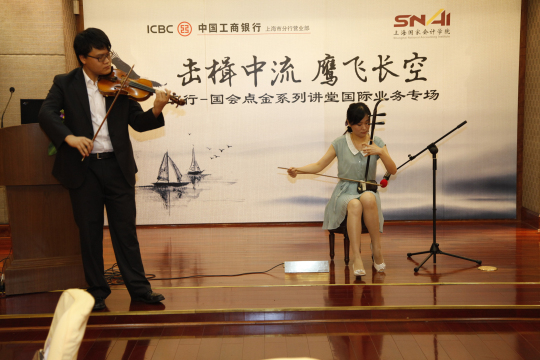 8月22日,我院携手工商银行上海市分行营业部在外滩24号举办了题为“击楫中流,鹰飞长空”的工行—国会点金系列讲堂国际业务专场。16家上海国家会计学院校友企业的总经理、财务总监、财务经理前来参加,工行营业部总经理徐晓萍、分行国际业务部副总经理陆晓、工行营业部副总经理张铭、徐劲松、我院各项目负责的老师出席了此次讲堂。