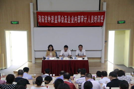 (撰稿:张莉;摄影:张涛)9月11日,“湖南省外派监事会及企业内部审计人员培训班”开班典礼在我院举行。出席开班典礼的领导有湖南省国资委党委副书记、纪委书记王宏与我院管一民教授,开班典礼由省国资委监事会工作处岳倩如处长主持。