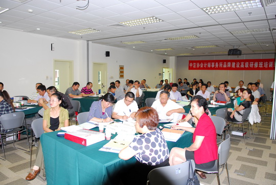本次培训得到中注协的大力支持,对于前期的每一步工作部署培训部都给以支持和鼓励,适时给予指导性意见。培训班伊始,中注协培训部的赵晓玲主任和研究发展部的白晓红主任悄悄来到培训班当中,坐在教室最后跟学员一起听课。晚上的研讨会是本次培训班的一大亮点。也是培训课程的重要组成部分。同学们把握机会,带来了各自事务所在品牌推广方面所做的宣传册、DM单甚至视频资料给大家展示,我们安排了三方面的点评:来自美术设计方面的专家从艺术角度的点评、来自致同的庄达从国外的角度进行点评、来自中注协负责品牌建设的白晓红主任从协会的角度进行点评。通过点评,同学们看到了各自的差距所在,也更深切地感受到事务所品牌建设的意义所在和未来的努力方向。