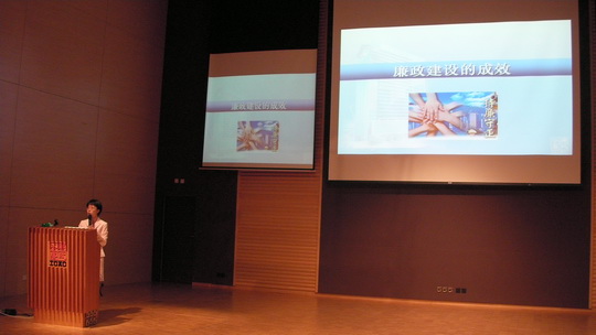 来到廉政公署,仰望大楼,其建筑外观设计简洁、庄严、肃穆。进入大楼内部,格外肃静。这次活动核心是聆听香港道德发展中心主任林慧芬女士关于香港廉政发展及组织架构介绍的讲座。香港廉政公署(ICAC)简称“廉署”,是香港特别行政区专门打击贪污的独立执法机构。1974年廉政公署(ICAC)成立以前,香港曾是个贪腐盛行的社会。廉署成立后短短数年,香港便跻身全球最清廉地区之列,目前在“透明国际”180个国家和地区排名中位居第十二位,在亚洲则仅次于新加坡。与之相应,香港廉署也走过了从最初被质疑到很快确立强大公信力的过程。在相关的系列民调中,香港公众对廉署的信心始终维持在90%左右,对廉署工作的支持度则超过99%。