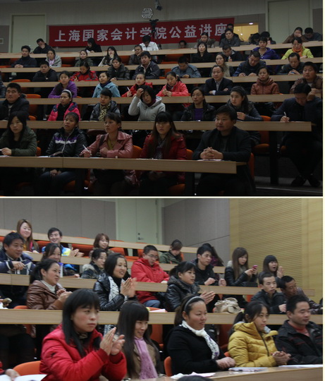 这是在上海国家会计学院,“如何与子女沟通”公益讲座现场。