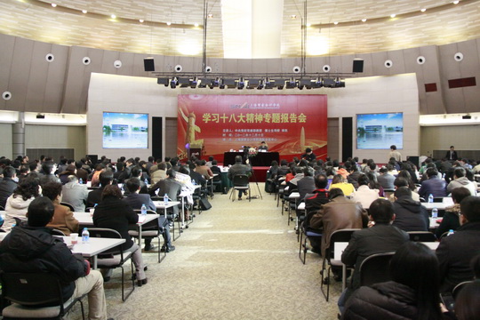 在两个多小时的讲座中,李民教授梳理历史,分析现实,结合学院实际,畅谈个人感悟,在座听众无不聚精会神,边听边记。在李民教授的带领下,大家对十八大精神的理解越来越深刻,也越来越具体。当前,学院正处于“不松劲要爬坡”的发展关键期,需要以改革创新的精神推进各项事业提质升级。十八大的宏伟布局为学院的发展提供了广阔的社会背景和难得的发展机遇。每一位员工也将在十八大精神的鼓舞下,团结协作,追求卓越,推动学院事业发展的同时,为中华民族的伟大复兴做出自己的努力。(编辑:李泓)