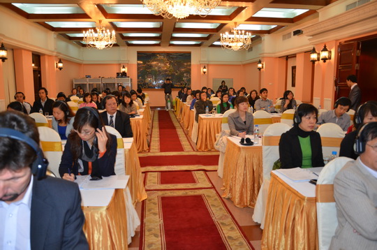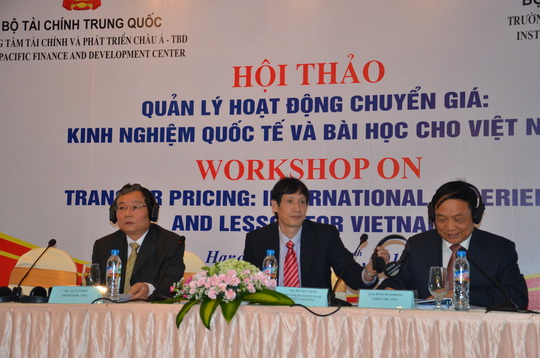 上海国家会计学院管一民教授,亚太财经与发展中心彭润中处长和越南财政部财政干部学校Do Duc Minh校长主持“转移定价:国际经验及对越南的借鉴”国际研讨会并讲话。