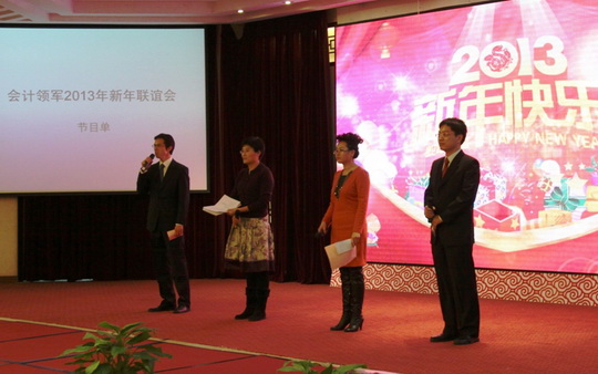 (撰稿:邵瑞珍)1月19日晚,全国会计领军2013年北京同学会新春联谊会在北京如期举行。财政部副部长王军、杨敏司长、欧阳宗书副司长、国家会计学院嘉宾、中注协、中国会计学会与全国会计领军200多名同学共聚一堂。此次联谊会由企业类五期承办,我院院长助理卢文彬、教务部主任刘凤委等一行四人参加了联谊会。王军副部长表示,财政部会切实做好各种保障,保证将会计领军人才工程办好。王军副部长再一次对大家寄予厚望,“数风流人物,还看今朝!”