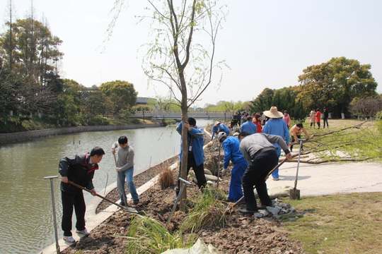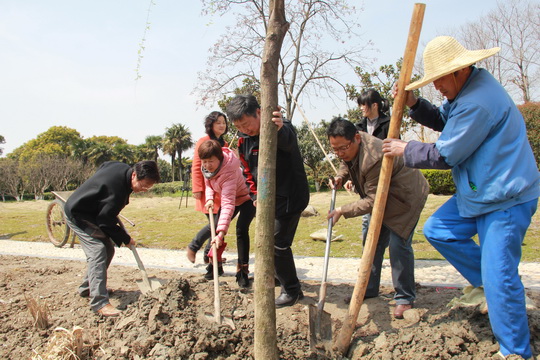 活动开始前,学院党委副书记、副院长刘勤作了动员讲话,他说,2012年,学院积极开展了“全国绿化模范单位”的创建活动,在全体教职员工的共同努力下,创建工作取得了上海市第一名的优异成绩。为巩固“全国绿化模范单位”创建成果,进一步提升学院全体师生的建绿、爱绿、护绿意识,学院组织开展了2013年义务植树活动,在为学院播下一片新绿的同时,进一步提升学院的园林文化。
