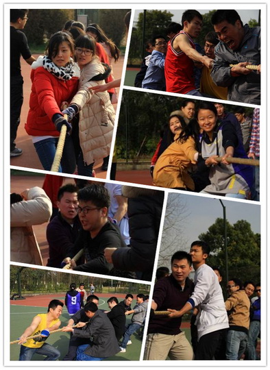 很快到了25日正式比赛时,刘勤副院长在百忙之中前来参赛。比赛还没开始,露天广场已经沸腾起来,排队伍、整队形、练口号,选手们不亦乐乎。一方是身经百战的上国会老将们,一方是永不服输的弄潮儿们,赛事扑朔迷离。裁判一声令下,第一局比赛开始。双方鼓足力气,咬紧牙关,紧握绳子,一鼓作气往后拉,嘶吼声、呐喊声,震耳欲聋。僵持了20秒之后,研究生先得优势。“一二,一二……”双方使出浑身解数,个个面红耳赤,很快,研究生赢得了首局。接下来的一局,谁都不敢懈怠。又是一阵声嘶力竭的搏斗,终于,身经百战的老师们扭转战况,扳回一局。局势开始紧张起来,裁判“预备,一、二、三……”,第三局立马进入炙热状态。刚开始,老师们众志成城,稳扎稳打,占了上风;但研究生们并不示弱,鼓足干劲,奋力一拼,最终,他们以2比1的优势赢得了整场比赛。老师们也不由感叹道:“年轻真好!”