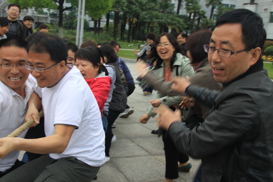 拔河活动,比的是力量和步骤一致。“瞿,瞿—”随着总裁举起哨子,一声长啸。三局二胜,拔河活动结束。罗马广场上跳跃着山东队选手的身影,充满了他们震天的欢庆声。正如一位学员戏谐:“一个吃粗粮的,一个吃细粮的,怎么比?”