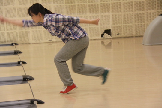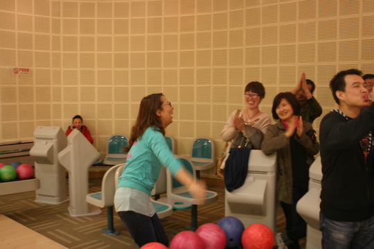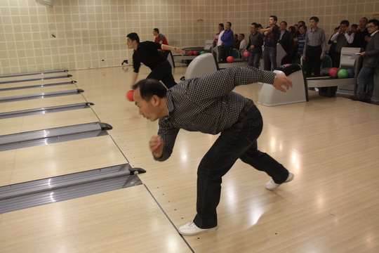 紧接着,保龄球比赛开始了。严谨和运动的结合,往往有不一样的精彩。平时这些西部地区和齐鲁大地上各行会计精英总是一副严谨的外表,可在赛场上展现了一颗颗充满激情与活力的心。经过前面的拔河比赛,两队此时的心态不一样了,一边是心有不甘,力图全力反击;一边是还沉浸在刚才的拔河喜悦中,信心满满。在清脆的球、瓶撞击声中,学员们相互交流,切磋技艺。而其余的班级啦啦队成员,则自觉地为队友们加油鼓劲,击掌喝彩,整个保龄球馆内洋溢着有序、和谐的气氛。高分贝的喝彩声、叹息声、加油声,一浪高过一浪,充满了整个球馆。队员们也被气氛所感染,团结一心,用心打球。在第一局结束时,宁夏队女子团队打出了全场312分的最高分,暂时领先。第二局开始,选手们互换球道。保龄球馆突然变得一阵寂静,只听到球的“蹦蹦声”及机器的运作声。场边的学员,都默默地为本队加油!有的脸上写满了焦急,有的眉头紧紧锁着,有的在旁轻轻商量。比赛在一分一秒中进行着…当,你突然听到,整个球馆持续有节奏地爆发出更强分贝的,排山倒海的加油声、喝彩声和撕吼声时。排排的声浪,直冲球馆屋顶,久久回荡在馆内。此时,比赛已进入刺刀见红,白热化阶段了。