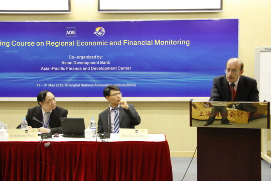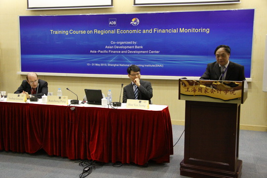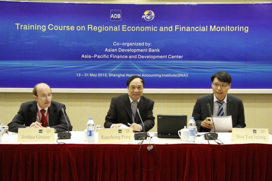 (撰稿:李可;摄影:刘晓强)5月13日, 由亚太财经与发展中心(AFDC)和亚洲开发银行(ADB)联合举办的 “区域经济与金融监测”(REFM)国际培训班于我院正式拉开序幕。此次培训班为期三周,来自10+3机制下的28名中高层政府官员参加该培训。 AFDC彭润中处长、ADB区域经济一体化局高级经济学家Hoe Yun Jeong先生和Joshua Greene教授出席开幕式并分别致辞。