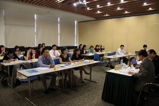 四天的课程安排十分紧凑,信息量大,内容丰富。但是来自越南的学员始终保持了旺盛的求知精神,对中国的税务实践体现出浓厚的兴趣和学习欲望。5月30日下午,AFDC彭润中博士和王琳老师主持了简短的结业仪式,彭老师讲到,中国的改革开放30年积累了大量的经验教训,希望中国在税务改革方面的这些经验对越南的经济发展有借鉴意义。我们也看到,越南在很多方面已经迎头赶上,双方应该彼此借鉴,彼此学习,共同发展。中越要做好邻居好伙伴,而亚太财经与发展中心同越南财政干部学校的交流合作也要服务大局,通过培训更多的中越财政干部促进越中友谊。同时也希望越南的朋友们能学以致用,把在上海4天的学习成果运用到以后的工作。越方代表邓玉选副司长感谢了中方的热情招待,他谈到,亚太财经与发展中心的工作非常重要,为亚洲其他国家了解中国,了解上海提供了难得的平台,他也诚挚的邀请中心的朋友们访问河内,交流经验。之后,三位专家对完成4天学习的18名越南学员颁发了证书。