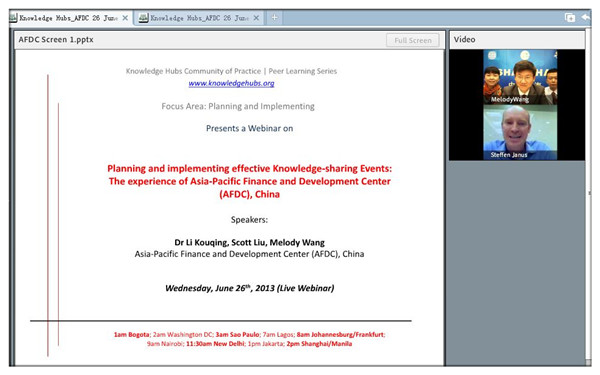自今年初COP推出该系列活动以来,来自3M、 ConocoPhillips、Caterpillar、WBI、NASA、蒙特雷科技大学Tecnológico de Monterrey (ITESM)等能力建设机构的同行间已就各自实践经验和教训展开了系列交流活动。AFDC应邀于2013年6月26日进行主题为“来自中国亚太财经与发展中心的经验”的主题分享。