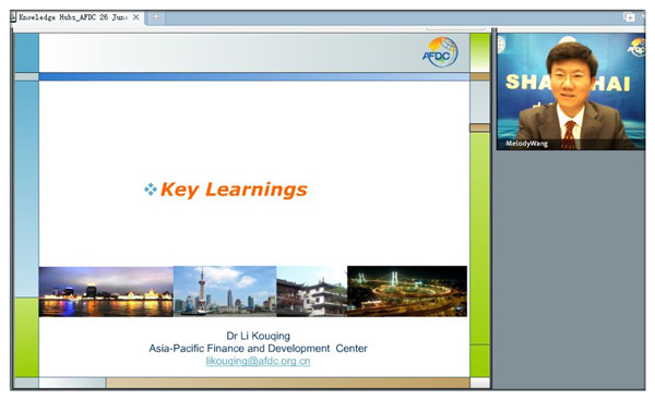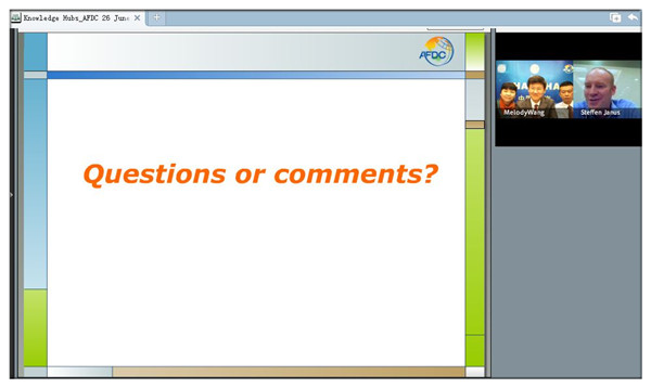 最后,李院长总结了构建有效的区域性知识分享平台重要的五方面:1.坚持需求为导向,构建财经能力建设平台;2.紧密结合地区热点、重点、难点问题,组织分享能力建设活动; 3.广泛开展国内外合作,整合多元化资源;4.中国政府的有力支持; 5.加强自身能力建设,为“Knowledge Hub”提供动力。 在全球化发展大背景下,AFDC围绕如何构建“知识中心--Knowledge Hub”的发展目标,仍处在需要不断探索思考的阶段。
