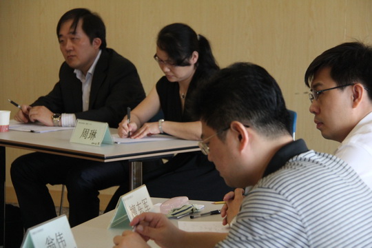 面试官由学院管一民教授、香港中文大学会计学院院长杨丹青教授主持。延续过去五期的做法,本次面试同样邀请了两位EMPAcc项目校友——上海恒能企业发展集团公司财务总监姚炜同学和张江创新学院周丽辉同学——作为面试官,全程参与面试。面试采取小组讨论形式进行。通过组内讨论,面试官从中了解每位组员对商务、管理、教育等相关问题的见解和看法,从而更深入地了解申请者的资质。