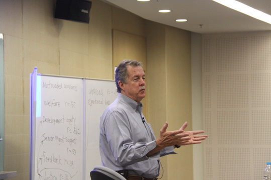 亚利桑那州立大学凯瑞商学院丹尼尔•布鲁克斯教授倾情执教,深入浅出讲解统计学的精髓——研究随机现象,以推断为特征的方法论科学。丹尼尔教授认为:在终极的分析中,一切知识都是历史,在抽象的意义下,一切科学都是数学,在理性的基础上,所有的判断都是统计学。课堂上,教授行云流水,无论是生活中的例子,还是其他领域的问题,教授都是信手拈来,使学员们感悟到了统计学的魅力所在。教授通过简明扼要的知识点讲述、生动丰富的案例教学和风趣幽默的授课风格,带领学员们寻找看似杂乱无章的数据背后的规律和联系,并向大家讲授通过数据分析为决策行为提供依据的基本方法。4天的课程让大家意犹未尽、受益匪浅。