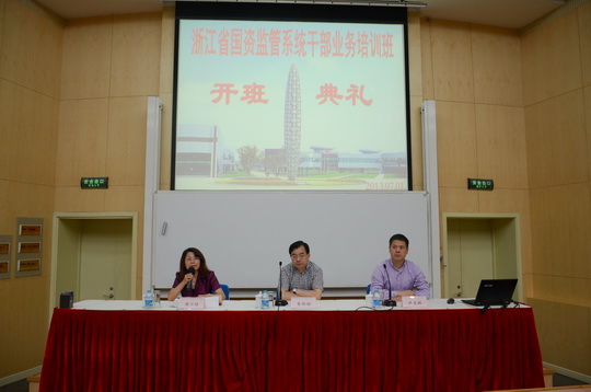 继去年之后,浙江国资委再次选择我院举行培训。7月1日,在这个特殊的红色日子里,浙江国资委通过隆重而简短的开班仪式,拉开了本次培训的序幕。94名来自不同单位的学员在我院正式开始了为期一周的培训生活。浙江国资委副主任朱恒福,浙江国资委人事处处长柴云妹,学院院长助理卢文彬出席开班仪式并讲话,浙江国资委人事处处长柴云妹主持仪式。