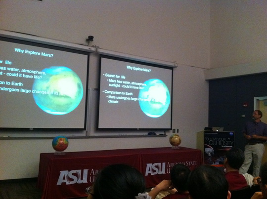 在“火星实验室”讲座课堂上,伴随着学员的一系列问题,ASU知名地质学教授一边拿着一颗小陨石,一边津津乐道的为大家做着最为专业的解答。当他讲到深处所流露出的那最真实的微笑、从大脑激发出来的亢奋以及发自内心的满足,使我们坚信,只有真正热爱这项工作的人,才能坚持不懈的研究这个只有“黄土”的枯燥、寂静的神秘世界,或者这就是美国航天技术顶尖的真正原因。