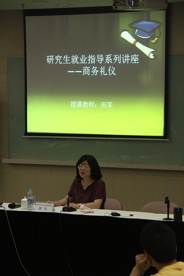 如何做到“修身”,《礼记•大学》里提到:欲修其身先正其心,欲正其心先诚其意,欲诚其意先致其知,致知在格物。6 月24 日,怀着格物致知的态度,我们有幸聆听了上海师范大学田军教授带来的“商务礼仪讲座”。此次讲座是学院研究生部学生工作办公室举办的全日制研究生就业指导系列讲座之一,目的是在于提升我们综合素质和就业竞争力。