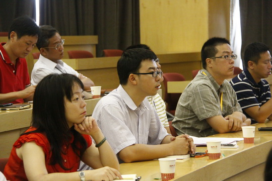 最后,教务支部书记马丽娜、行政财务支部书记张各兴、AFDC支部书记赵敏分别介绍了各自支部如何在群众路线活动中开展组织生活。教务支部根据支部党员人数多、青年党员多的特点,建立竞争型学习模式,将支部成员分为三个小组,每个小组确定一个研究方向,包括“照镜子,厉行节约”、“正衣冠,自我革新”、“洗洗澡,查管理问题”。各小组按主题进行调研学习,并牵头召开组织生活会进行分享和讨论。每次组织生活会前,各小组会综合运用问卷调研、电话调研、视频采访、师资访谈、实地调查等方式进行多层次调研,形成统计结果后,再有针对性地展开学习和问题查摆。