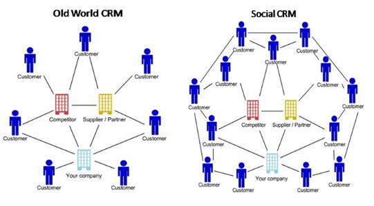 那么,公司应该要主导这类谈判品牌的社群讨论吗?我们能否承担言论失控的后果?出现负面信息怎么办?公司该怎么向社交媒体做出回应?这和线下的操作方式有多大区别?公司该监测哪些东西?要怎么掌控当前客户拥有更大权力的局面……面对与过去相比是天差地别的“社交型客户关系管理”(见下图),公司不得不考虑一系列问题,以更好地制定服务新规则,赢得更好的口碑。