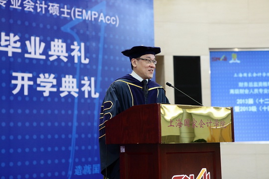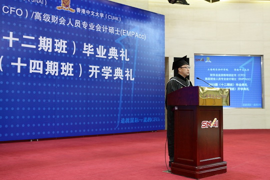 上海国家会计学院李扣庆院长在祝贺毕业生顺利毕业、十四期新同学即将开展精彩的学习旅程之时,也宣布了一个重大信息,即EMPAcc项目的学位认证在刚刚过去的几天获得了国家教育部的认可。这是EMPAcc项目十一年发展的实力证明,也是国家教育部门对EMPAcc项目为社会培养高精人才的积极肯定。香港中文大学商学院黄德尊院长也向在座的学员介绍了中文大学在内地的发展战略,并邀请所有学员参加中大六十周年校庆的各项专题活动,进一步拓展视野,开阔思路。两位院长都对毕业生和新同学基于了厚望,希望同学们能用所学的知识帮助企业更好地发展,帮助社会拓展更美好的未来。并承诺,两校今后一定会一如既往地亲密合作,为学员们创造价值增值的平台。