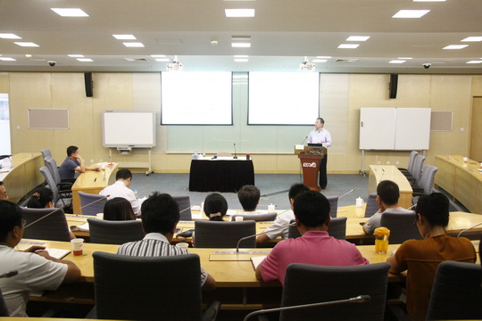 朱明处长以刚刚上市发行的《朱镕基上海讲话实录》开场,介绍了朱镕基同志在担任上海市长期间关于厉行节约、关心百姓的讲话和所做的实事。朱明说,开展教育实践活动以来,政府机关的工作作风有了很大的改善,整体感觉党风正了,民心顺了。随后,朱明处长重点围绕领导干部“四风”方面的表现、贯彻落实八项规定的意义、八项规定带来的新气象等主题展开讲座。朱明处长还结合八项规定要求介绍了如何简朴高效地开展接待工作,并与在座员工进行了深入的讨论。很多员工表示,这次讲座让大家进一步理解了中央八项规定的意义,同时也为大家在厉行八项规定的前提下高质量地开展服务工作提供了新的思路。