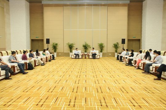 本次移动课堂得到了淮安市委姚晓东书记的会见,姚书记和学院李扣庆院长亲切会谈,姚书记对李院长、颜主任以及学院老师和全体同学的到来表示热烈欢迎,并在会见中如数家珍似的介绍着淮安的历史、现在和未来,以及淮安的政治、经济、文化、教育等的建设情况,希望我们在座的学员能到淮安投资,支持淮安的建设。李院长也向姚书记及淮安市委的各位领导介绍了学院及AFDC的发展情况,希望与淮安展开更多领域的合作,支持淮安的经济建设。