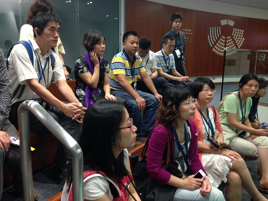10月9日上午,学员来到了香港立法会参观。香港立法会是面向公众开放的,任何个人或团体都可以提前一天向立法会预约免费参观,立法会有专门的工作人员组织公众参观并进行讲解。在工作人员的带领下,学员首先参观了立法会的历史展览馆,了解了立法会的发展历史和相关制度。目前的立法会是在香港回归后重新组建的,在回归前称为立法局。立法会由70名议员组成,其中35位议员经分区直接选举产生,其余35位经功能团体选举产生。工作人员还带领大家参观了立法会的会议大厅,并有幸现场观摩了当天上午立法会召开的会议讨论。每场会议都会配备三种语言同声传译,英语、汉语和粤语。参观后,学员又发挥了好学的精神,围绕着工作人员提问咨询,深入了解更多知识。