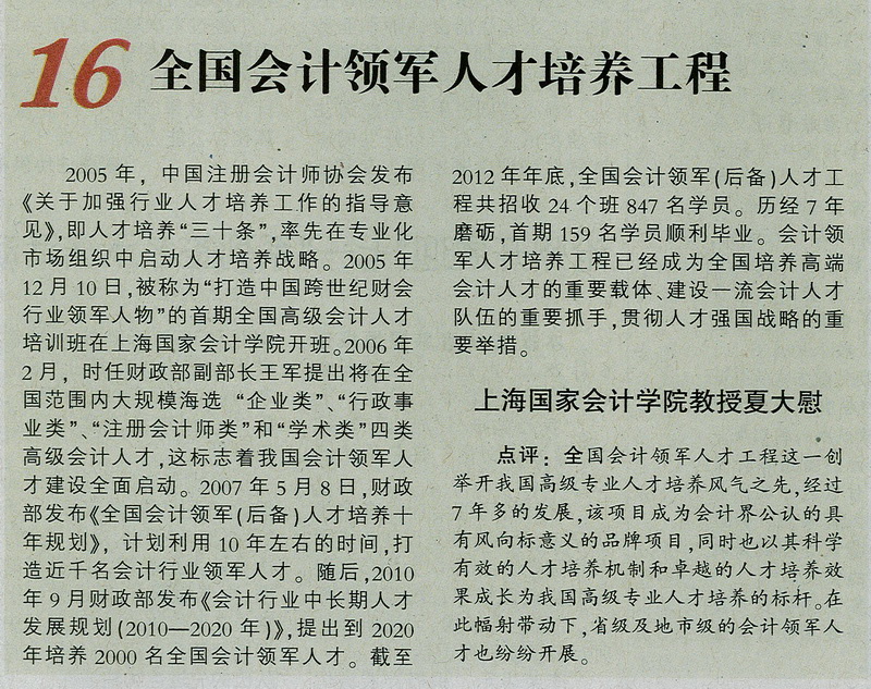 “中国会计强国梦”最具影响力大事16(全国会计领军人才培养工程)【中国会计报,2013年7月19日】