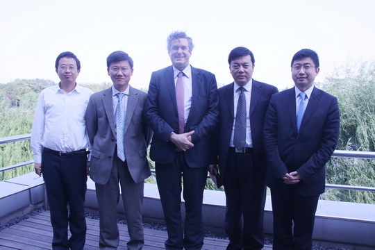 ESCP欧洲商学院校长爱德华•钰龙教授(中)、我院院长李扣庆教授(左二)、副院长刘勤教授(右二)