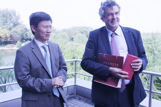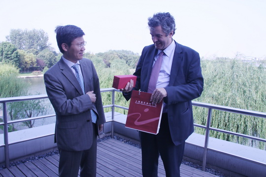 (撰稿:王子元 )10月24日,ESCP欧洲商学院校长爱德华•钰龙教授在其国际事务副院长刘国坚副教授的陪同下至我院访问。我院院长李扣庆教授、副院长刘勤教授及研究生部副主任郑德渊副教授等人会见了来宾。会谈期间,主宾双方分别向对方介绍了自己学校情况,就可能进行的合作可行性进行了探讨。