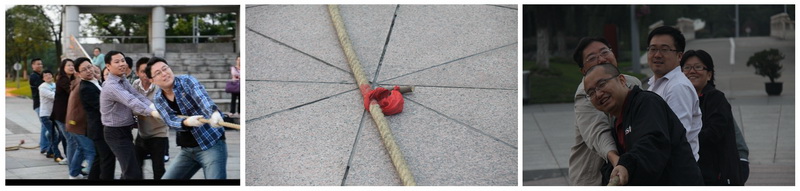 课程结束后,上注协四期、上评协二期与上注协三期上演了一场“蓄谋已久”的拔河大战。双方班长都在立信会计师事务所工作,早在一个月前就为此次活动的形式在所里进行了特别“会晤”。最终确定了拔河比赛。由于人数众多,大家分成了五组。抽签决定顺序,其中抽到特别号码的一组直接晋级,评估组幸运的拿到直接晋级牌。比赛中,大家并没有进行严格的班级和组别的划分。充分展示了友谊第一,比赛第二的高风亮节。比赛过程中,大家都使出吃奶的劲儿,啦啦队更给力,声嘶力竭的呐喊助威。华灯初上,比赛才宣告结束,事实证明,友谊的力量果然强大,最终,由混合组拔得头筹。