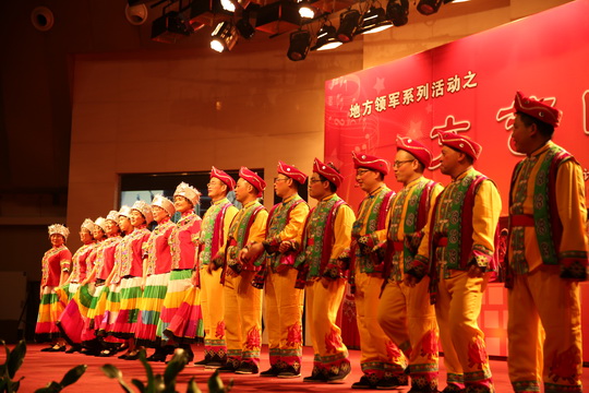 伴随着浪漫又富有神秘气息的阿拉伯音乐,六位身着异国服饰的女郎摇曳着婀娜的身姿,在异国情调中舞动曼妙的身姿。12月14日地方领军晚会也在这上国会舞蹈团这自信、优雅、性感、妩媚的舞步中拉开帷幕。各个班级节目形式多样,欢呼声此起彼伏,同学们将民族音乐、音乐、服装、编剧强强联合,促成了一场精彩纷呈的演出。教务部刘凤委副主任也同学们深情演绎一曲¬¬¬—《夜未央》,学员们纷纷被刘老师魅力折服,齐声高喊“再来一曲”!宁夏首期班带来的《宁夏数花》小合唱颇富民族特色。《诗歌朗诵-爸爸的算盘》由舟山班级倾情演绎,感人深思。宁波班级歌舞表演《吉祥》,更是带我们领略了藏族舞蹈的魅力。广西企业三期班的同学自编自演的小品剧《非常无扰之刘三姐招亲版》更是提前把节目带入了高潮。山东汉子一曲男生小合唱《好汉歌》荡气回肠。宁夏二期班诗歌朗诵《黄河赋》更是带我们重新领略了宁夏自然美丽的风光。重庆班级同学们身穿特色民族服装,载歌载舞带来一曲《太阳出来喜洋洋》。广西医改班同学的传统对歌表演,设计的抛绣球环节,赢得了观众们热烈的掌声。
