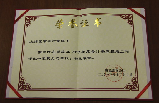 我院喜获2012年度财政部办公厅决算编报工作先进单位