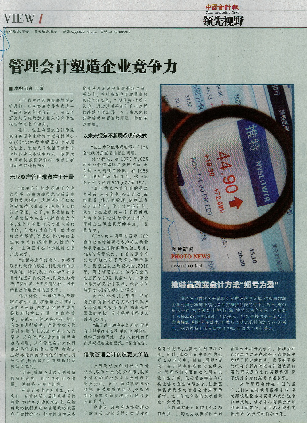 管理会计塑造企业竞争力【中国会计报,201年11月29日】