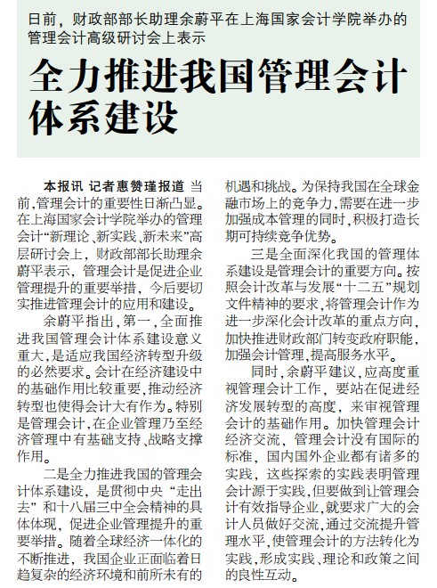 全力推进我国管理会计体系建设【中国会计报,2013年12月6日】