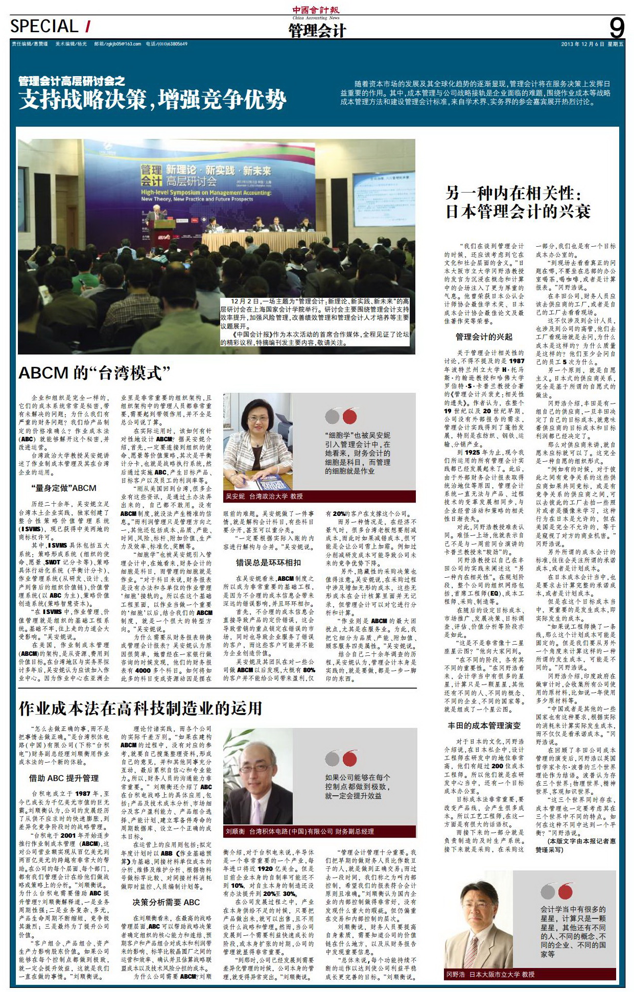 中国会计报“上海国家会计学院‘管理会计研讨会’专版”(第9版)【2013年12月6日】
