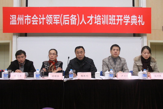 12月23日上午,举行了开学典礼。温州市财政局党组成员、机关党委书记、调研员陈胜利、会计处处长吴明华、副处长吴叶然及杨志建、狄彩萍两位老师,我院院长助理卢文彬、教务部副主任刘凤委、领军人才项目组王欣、邵瑞珍两位老师及40名温州市会计领军人才参加了开学典礼。典礼由刘凤委老师主持。