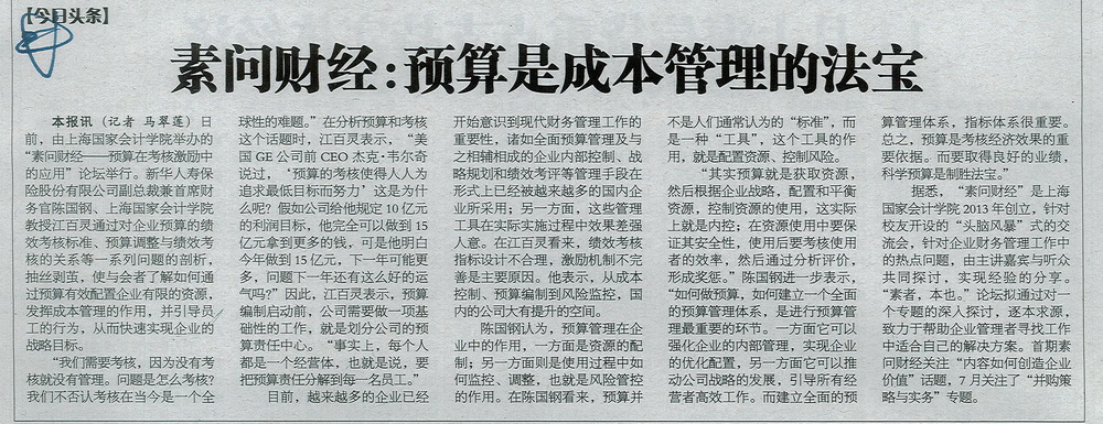 素问财经:预算是成本管理的法宝【上海金融报,2013年12月17日】