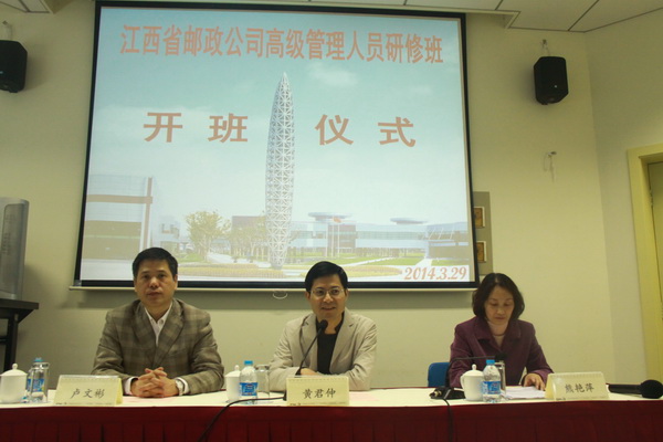 3月30日上午,江西省邮政公司第二期高级管理人员培训班在我院第一教学楼220教室举行了隆重的开班仪式。江西省邮政公司总经理黄君仲,上海国家会计学院卢文彬院长助理出席了开班典礼并致辞。