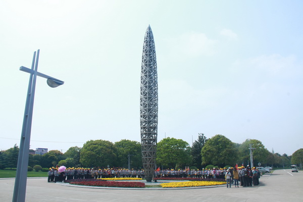 200多张稚嫩的小脸聚集在学院标志性建筑——公证柱下,好奇的猜测着这对他们来说充满了神秘感的建筑。这些来自徐泾中学的初一年级的学生,在我院团委委员杨熠的带领下,在学院开展他们半天的校外实践活动——徒步参观我院校园。
