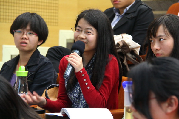 最后,“读书沙龙”的组织者杨贵荣老师宣布:考虑到我院首届研究生将于今年6月底毕业离校,经和徐教授商量后,徐教授明确表示:第三次英语讲座将在此之前举办。