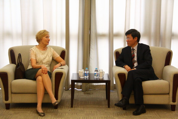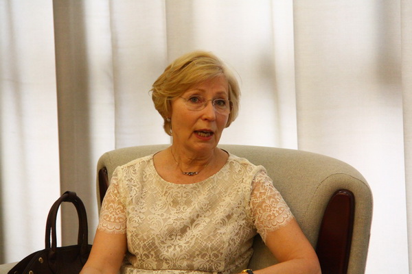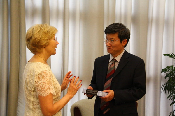 伊尔玛.卡尔宁娜女士是国际商务礼仪咨询专家,曾担任国际慈善活动“国家种族治愈日”国际部主任,一直致力于国际慈善活动和拉脱维亚的对外友好交往活动。会谈中,卡尔宁娜女士向李扣庆院长和卢文彬院长助理介绍了拉脱维亚共和国的政治经济状况和社会发展状况,介绍了自己在作为拉脱维亚驻外使节夫人和议会外事委员会主席夫人期间为推动拉脱维亚对外交往,特别是拉脱维亚和中国的友好交往方面所做的努力,畅谈了女性在国家建设和社会发展中发挥的越来越积极而重要的作用。