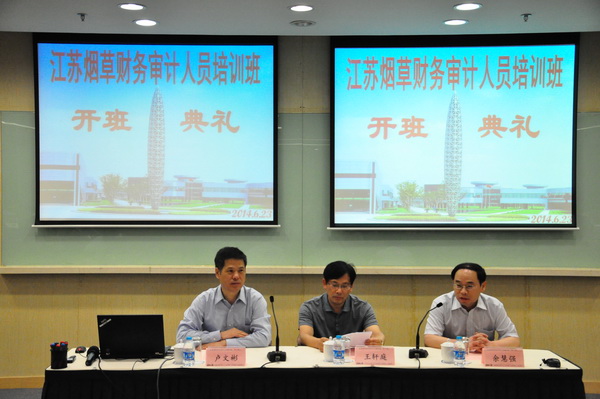 (撰稿、摄影:王欣)6月23日,江苏烟草系统2014年度财务审计人员培训班(第二期)在我院开班。来自江苏中烟工业有限责任公司及江苏省烟草专卖局财务审计系统的90余人参加了此次培训。我院卢文彬院长助理、江苏中烟公司总会计师王轩庭、江苏省烟草专卖局总会计师余慧强出席开班典礼。