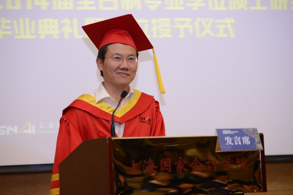 亲爱的同学们,你们即将离开这个熟悉的校园,离开你们熟悉的老师,去开拓属于你们的江湖,等待你们的,有机会,一定也有挑战。你们是上海国家会计学院的孩子,在你们即将离开这个大家庭去闯荡形形色色大江湖的时候,我想对你们说的有很多很多。