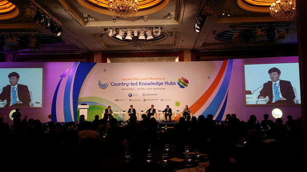 (文、图:王颖)6月23至26日,来自全球76个国家的500多名代表参加了由世界银行和韩国战略与财政部在首尔联合举办的全球第二届国家主导的知识中心高级别会议(HLM2),旨在促进相关机构在获取、分享发展经验方面的交流,提升知识分享的能力。受邀机构包括推动知识分享的政府部门、非政府组织、学术机构、智库和私营部门等。亚太财经与发展中心因会前入选优秀知识中心(Knowledge Hub Champion)应邀参加该会。